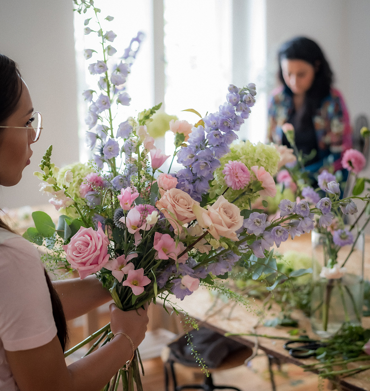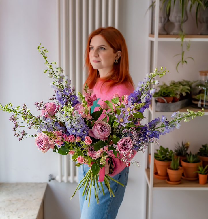 Opowiemy Wam czym kierujemy się przy doborze kwiatów, jak wybieramy kolory i faktury kwiatów i zieleni. Pokażemy jak układamy bukiet i wytłumaczymy dlaczego akurat tak.